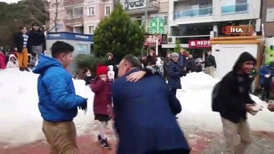 -Çocukların Başkan Akın'a kar topu atması