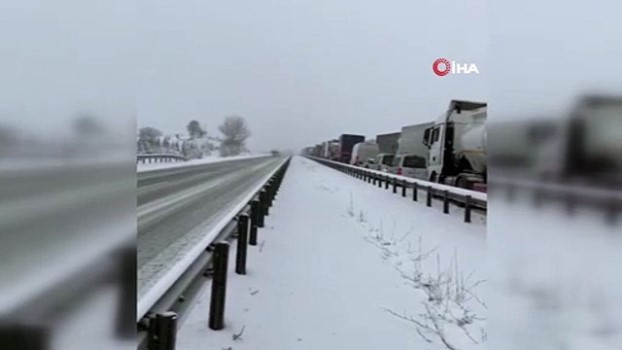 Karabük'te kar yağışı ve buzlanmadan dolayı trafik durdu