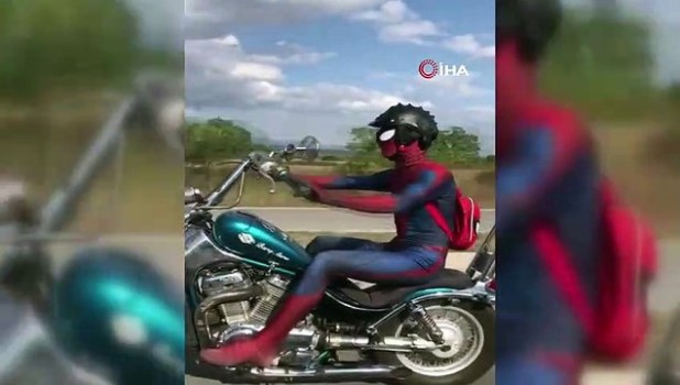 - Antalya'da örümcek adam kıyafetiyle motosiklet kullanan sürücü, görenleri şaşırttı. Örümcek adamın o halleri diğer sürücülerin cep telefonu kamerasıyla kaydedildi. Antalya'nın Serik ilçesinde D-400 karayolunda seyir halinde bulunan bir motosiklet sürücüsünün örümcek adam kostümü görenlerin hem ilgisini çekti hem de gülümsetti. Diğer sürücüler motosiklet üzerindeki sürücünün o halini cep telefonuyla kaydetti.