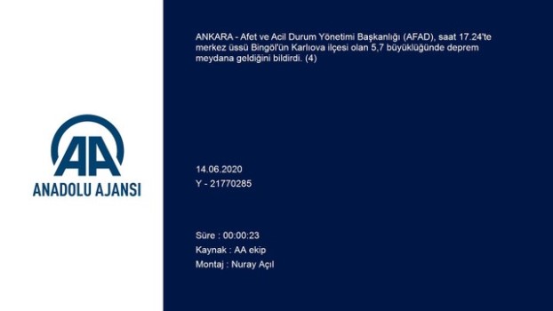 - Güvenlik kamerası görüntüsü - Sallanan avizeANKARA (AA) - Afet ve Acil Durum Yönetimi Başkanlığı (AFAD), saat 17.24'te merkez üssü Bingöl 'ün Karlıova ilçesi olan 5,7 büyüklüğünde deprem meydana geldiğini bildirdi.AFAD'dan yapılan açıklamaya göre, saat 17.24'te Karlıova'da 5,7 büyüklüğünde deprem kaydedildi.Depremin Bingöl 'e yakın çevre illerde de hissedildiği öğrenildi. DepremBildKamera