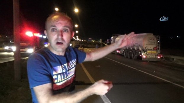 - Tekirdağ’da karşı şeride geçen araç dehşet saçtı saman yüklü tır yolu tamamen kapatarak bariyerlerin altına girdi. Uzun süre Tekirdağ-Çanakkale yolunu kapanırken meydana gelen kazada iki kişi yaralandı. Kaza Tekirdağ’ın Süleymanpaşa ilçesi Malkara yolu üzeri Yeni Sanayi Sitesi mevkiinde meydana geldi. İddiaya göre, Malkara istikametinden İstanbul yönüne giden 59 SL 605 plakalı cip, seyir halindeyken, bir anda direksiyon hakimiyetini kaybederek orta refüjü aşıp karşı şeride geçti. O sırada İstanbul yönünden Malkara yönüne giden saman yüklü 45 TD 253 plakalı bir tır, kendisine doğru gelen araca çarpmamak için sağ yaparak yolun ortasına devrildi. Devrilmenin etkisiyle sürücüsü yaralanan tır, yolun trafiğe tamamen kapanmasına neden olup bariyerlerin altına girdi. Tırı devirdi, otomobille kafa kafaya çarpıştı Tırdan hafif sıyrılıp hızını alamayan araç, bu seferde hemen tırın arkasında seyreden Y.G. hakimiyetindeki34 HR 7563 plakalı araçla kafa kafaya çarpıştı. Araçların kafa kafa çarpışmasıyla birlikte 59 SL 605 plakalı cipin sürücüsü yaralandı. Kazayı gören diğer sürücüler hemen itfaiye, 112 Acil Sağlık ve polis ekiplerine haber verdi. Olay yerine gelen itfaiye ekiplerinin yardımıyla araçlardan çıkarılan tır ve cipin sürücüsü, ilk müdahalelerin ardından hastaneye kaldırıldı. Kazayı hiçbir yara almadan ucuz atlatan Y.G. ise kazanın meydana geldiği anları anlattı. “Alkol kokuyordu” Sürücü Y.G. “Araç karşı şeritten geldi. Karşı şeritten orta refüjü de atlayarak bizim önümüze geldi. Üzerime gelirken frene yüklendim durmaya çalıştım. 112 aldı götürdü üstü alkol kokuyordu. Zaten o anda tır kurtarayım diye kendini sağa attı. Ondan sonra devrildi. Tırın dorsesine girdi ilk önce sonra oradan bize çarptı” dedi.