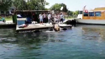 ( İSTANBUL - EK)- Kurbanlık dana, deniz polisi ve itfaiyenin çalışmasıyla çıkartıldı İSTANBUL