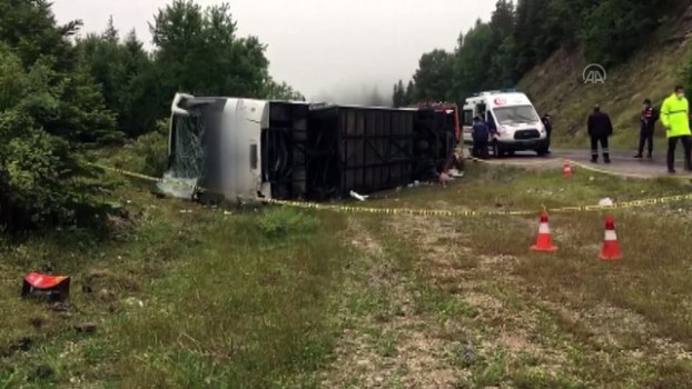 - Devrilen otobüsten görüntü - Ambulanstan görüntüKASTAMONU (AA) - Kastamonu 'nun Küre ilçesinde yolcu otobüsünün devrilmesi sonucu 13 kişi yaralandı.İstanbul'dan İnebolu'ya giden sürücüsü henüz öğrenilemeyen 41 EF 169 plakalı yolcu otobüsü, Kastamonu - İnebolu kara yolu Tünel mevkisinde devrildi.Kazada yaralanan 13 kişi, 112 Acil Servis ekiplerince çevredeki hastanelere kaldırıldı. HastaneYolcu Otobüsü