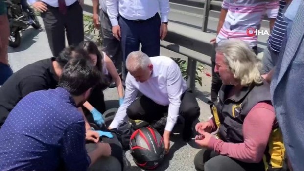 Kaza geçiren motosikletlinin yardımına Binali Yıldırım koştu