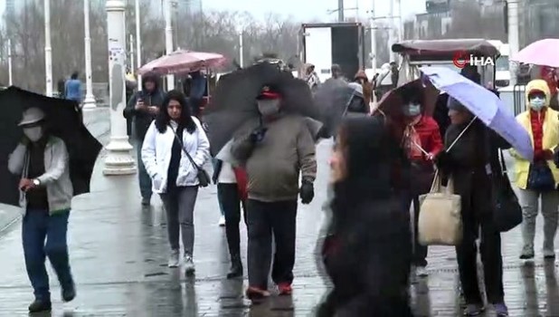 - İstanbul’da beklenen yağış Taksim’de de etkisini gösterdi. İstiklal Caddesi’nde bazı vatandaşlar yağmurdan kaçarken, fotoğraf çekerek gezmeye devam eden turistler ise dikkat çekti. Rüzgarda kırılan şemsiyeler çöpleri doldururken şemsiye satıcılarının da yüzü güldü. Meteoroloji Genel Müdürlüğü’nün dün akşam saatlerinde İstanbul’a yönelik yapmış olduğu fırtına ve yağmur uyarıları, bugün öğle saatlerinden itibaren sağanak yağmur şeklinde kendini gösterdi. Fırtınanın etkisiyle vatandaşların ters dönen şemsiyeleri çöpleri doldururken, caddedeki şemsiyecilere ise gün doğdu. İstiklal Caddesi’nde şiddetli yağmur ve fırtınadan dolayı yürümekte zorlanan insanların yanı sıra turistlerin fotoğraf çekerek gezmeye devam etmesi dikkat çekti.