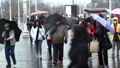 ( İSTANBUL )- Kimi yağmurdan kaçtı , kimi yağmurda fotoğraf çektirdi- Taksim’i sağanak yağış vurdu İSTANBUL