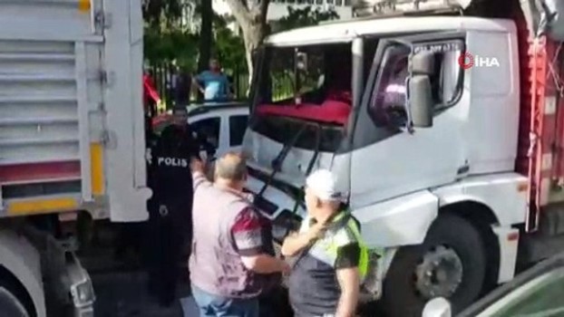 Kırmızı ışıkta bekleyen 2 tıra çarptı, sıkıştığı araçta sigara yakmaya çalıştı