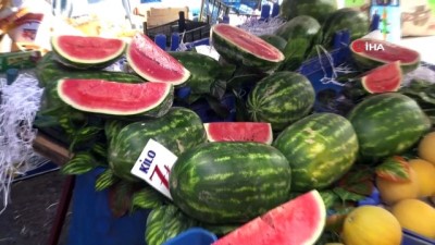 - Bursa’da sokağa çıkma kısıtlamasına saatler kala vatandaşlar pazarlara akın etti. Sosyal mesafeyi hiçe sayan binlerce kişi pazar çantalarını doldurabilmek için birbirleriyle yarıştı. Kısıtlama öncesi ilginin yoğun olduğu pazarın ateşi yükselirken Karpuzun dilimi 25, kirazın kilosu ise 30 liradan alıcı buldu. 2 günlük sokağa çıkma kısıtlamasına saatler kala Bursa Reyhan ve Tuz pazarlarının ateşi yükseldi. Yaz aylarının vazgeçilmez meyvesi karpuzun kilosu 9 ile 10 lira arasında satılırken, 1 dilim karpuzun 25 TL, 1 kilogram kiraz 30 TL, enginarın tanesi 4-5 TL, erik 10-15 TL, biber, patlıcan, salatalık 5 TL’den tezgahlarda yerini aldı. Reyhan pazarında kilosu 7 liradan satılan karpuz tuz pazarına yaklaştıkça fiyatı artıp 11 liraya kadar ulaştı. Bu duruma isyan eden vatandaşlar çarşıda adım başı fiyat artıyor. Ortalama 10 kiloluk bir karpuz almak için Reyhan pazarında 70, tuz pazarında 100 lira para ödüyoruz. 100 metrede 40 lira fiyat mı değişir" diyerek tepki gösterdiler. Meyve tezgah sahipleri ise mevcut karpuzun İran’dan kısmen de Antalya’dan gelmeye başladığını dile getirerek, “Karpuzlar şu an İran ve Antalya’dan geliyor. O yüzden fiyatları biraz pahalı. Müşterilerimiz genelde çeyrek ve yarım karpuz alıyor. Sadece fiyatından dolayı değil, yiyemedikleri için de bu şekilde tercih edenler oluyor. Biz Adana ve İzmir tarafında karpuzun çıkmasıyla fiyatların ucuzlayacağını düşünüyoruz. Bayram sonuna karpuz fiyatları düşecektir” diye konuştular.