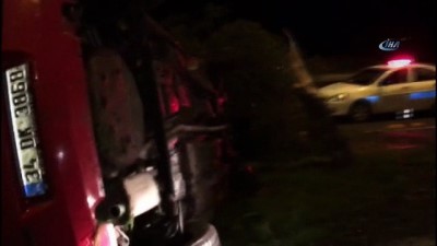 ( ISPARTA )- Kaygan zeminde sürücünün kontrolünden çıkan araç ağaçlara çarparak yan yattı- Isparta’da yağış kazası ISPARTA