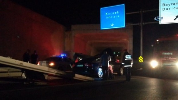 - Kocaeli’nin Darıca ilçesinde otomobilin demir bariyerlere çarpması sonucunda meydana gelen kazada otomobil sürücüsü ağır yaralandı. Kaza, Kocaeli’nin Darıca ilçesi Bayramoğlu Mahallesi D-100 Karayolu Darıca bağlantı yolunda meydana geldi. Edinilen bilgilere göre Kocaeli istikametinde seyir halinde olan Yusuf A. İdaresindeki 34 BCT 323 plakalı otomobil, sürücüsünün direksiyon hakimiyetini kaybetmesi soncunda demir bariyerlere çarptı. Kazada Yusuf A., ağır yaralandı. Olayı gören diğer sürücüler, hemen durumu 112 Acil Yardım ekiplerine bildirdi. İhbar üzerine olay yerine itfaiye, sağlık ve polis ekipleri sevk edildi. Kısa süre sonra olay yerine gelen itfaiye ekipleri tarafından sıkıştığı yerden çıkartılan Yusuf A. Sağlık ekiplerine teslim edildi. Sağlık ekiplerince ilk müdahalesi olay yerinde yapılan Yusuf A. Darıca Farabi Devlet Hastanesi’ne kaldırıldı. Kaza yapan otomobil, çekici yardımı ile kaldırılırken, polis kaza ile ilgili inceleme başlattı.