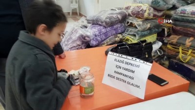 - Kütahya’nın Emet ilçesinde 9 yaşındaki Mücahit Çakır, Elazığ depremi için başlatılan yardım kampanyasına destek olmak için, ilçede kurulan pazarda tezgah açarak para topladı.Kütahya’nın Emet ilçesinde Emet Belediyesi tarafından Elazığ'da meydana gelen depremde mağdur olanlar için “Acınız Acımızdır “sloganıyla bir yardım kampanyası başlatıldı. Kampanya kapsamında belediyece kurulan bağış masasında vatandaşların kullanılmamış battaniye ve elektrikli ısıtıcı bağışları kabul edildi. İlçede yaşayan Gazi Emet İlkokulu öğrencisi 9 yaşındaki Mücahit Çakır ise kampanyaya destek vermek için farklı bir yol uyguladı. Bugün ilçede kurulan sebze ve meyve pazarında tezgah açan ve elindeki pankartla destek isteyen Çakır, cam kavanozunda yardımları topladı.Daha sonra Emet Belediyesine gelen Mücahit Çakır, görevlilerle birlikte paraları saydı. Topladığı yardımları depremzedelere bağışlamak isteyen küçük Mücahit'e belediye personeli yardımcı oldu. Küçük Mücahit ile bankaya giden görevliler AFAD’ın hesabına Mücahit Çakır’ın topladığı yardımları birlikte yatırdı. Banka müdür ve personeli de Mücahit'in kampanyasına destek vererek, parayı hesaba geçti.Depreme çok üzüldüğünü ve Elazığ'da dışarıda kalan çocuklar için yardım etmesi gerektiğini düşündüğünü belirten Mücahit Çakır, bu amaçla babası ile birlikte ilçe pazarında açtıkları yardım tezgahında para topladıklarını ifade etti.
