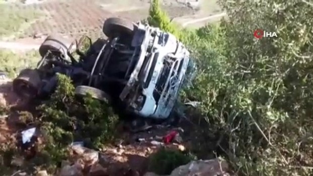 Kum yüklü kamyon kayalıklardan uçtu: 1 yaralı