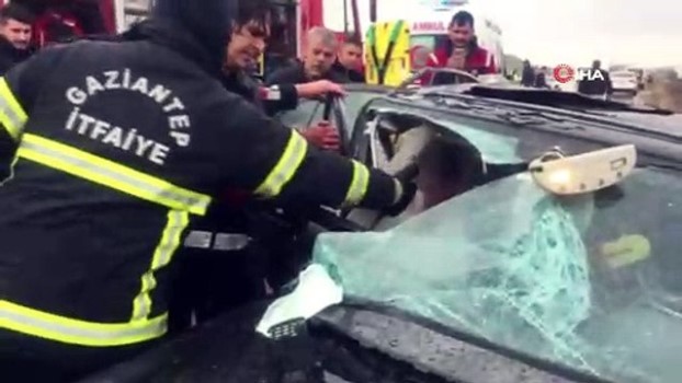 - Gaziantep’te dolu yağışından sebebiyle kayganlaşan yolda, 3 araç birbirine girdi. Can pazarının yaşandığı kazada, lüks otomobilde sıkışan kadın, sağanak yağışın altında kurtarılmayı bekledi. Araç içerisinde sıkışan kadın, başından akan kanlara rağmen, akrabasının sürekli ölüp ölmediğini sordu. Edinilen bilgiye göre Kaza saat 15:30 sıralarında Gaziantep Kilis karayolunda meydana geldi. Dolu yağışından dolayı kayganlaşan yolda direksiyon hakimiyetini kaybeden kamyonet sürücü karşı şeride geçti. Bu sırada Kilis'ten Gaziantep istikametine gelmekte olan lüks otomobil ile kafa kafaya çarpışan kamyonet sürücü araç içerisinde sıkıştı. Kazayı fark eden bir başka bir kamyonet ise tarlaya yuvarlandı. Yaşanan kazada kamyonet sürücüsü ağır yaralanırken, olay yerine gelen itfaiye ekipleri şahsı sıkıştığı yerden çıkartarak hastaneye kaldırdı. Kamyonetin çarptığı lüks araçta sıkışan Fatma D. isimli kadın ise sağanak yağmur altında kurtarılmayı bekledi. İtfaiye ekipleri tarafından sıkıştığı yolcu koltuğundan kurtarılmaya çalışılan yaşlı kadın, polis ekiplerine "Ahmet Yeter öldü mü" diye sordu. Uzun süren kurtarma çalışmasının ardından araçtan çıkartılan kadın, hastaneye kaldırılırken, dolu yağışı sebebiyle yaşanılan kazada 1 ağır 6 kişi yaralandı. Olayla ilgili soruşturma sürüyor.