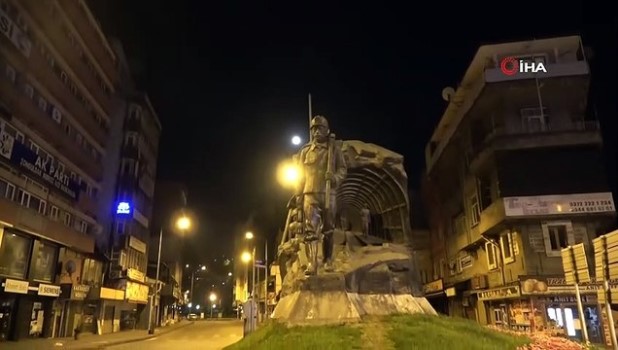 Zonguldak’ta gece yarısı itibariyle kısıtlamayla birlikte sokaklar boş kaldı. Kentin en kalabalık meydanı Gazipaşa Caddesi ve madenci anıtı kısıtlamanın ilk dakikalarından itibaren sessizliğe bürünerek boş kaldı.