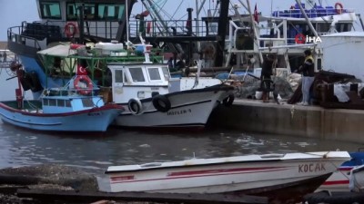 ( MERSİN )- 5 teknenin battığı Erdemli Balıkçı Barınağında balıkçılar fırtına nöbetinde MERSİN