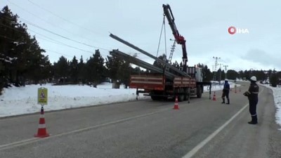 -Yeni direklerin vinçle indirilmesi