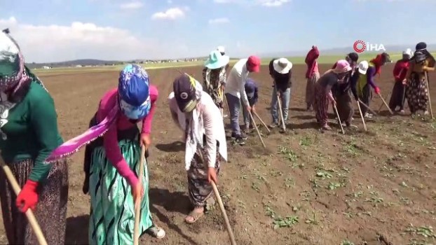 Mevsimlik işçilerin sıcakta çapa mesaisi