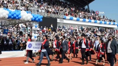 Tekirdağ Namık Kemal Üniversitesinde (NKÜ) 4 bin 500 öğrenci, 2018-2019 akademik yılında mezun olmanın heyecanını yaşadı. Namık Kemal Üniversitesi Stadı'nda gerçekleştirilen mezuniyet törenine 4 bin 500 öğrenci ve yetkililerin yanı sıra, NKÜ Fen Edebiyat Fakültesi Alman Dili ve Edebiyatı Bölümünden mezun olan 35 yaşındaki Kibar Ünal, 1 yaşındaki kızı Erva ile mezuniyet kıyafeti giyerek mezuniyet törenine katıldı.