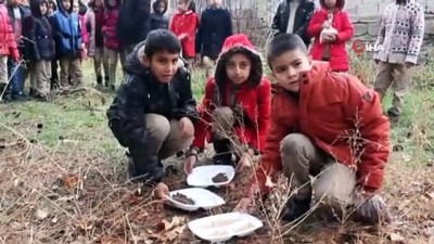 ( SİVAS )- Sivas Kanuni İlkokulu öğrencileri, soğuk havalarda yiyecek bulmakta zorlanan sokak hayvanları için tabldotlara hazırladıkları yem, kedi-köpek maması, süt ve suları okul çevresine bıraktı SİVAS