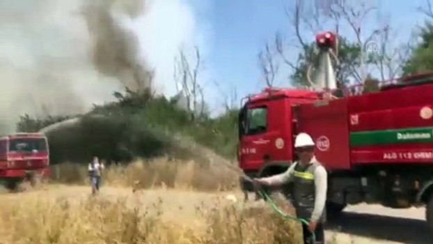 - İtfaiye ekiplerinin yangına müdahalesi - Yangın helikopterinin yangının çıktığı alana su taşıması - Yanan alanOrman ve makilik alanda yangın başladıMUĞLA (AA) - Muğla 'nın Dalaman ilçesinde ormanlık ve makilik alanda başlayan ve rüzgarın etkisiyle büyüyen yangına müdahale ediliyor.Altıntaş Mahallesi Akçataş mevkisinde Dalaman Açık Cezavevi yakınlarındaki makilik alanda başlayan yangın kısa sürede büyüyerek ormanlık alana sıçradı.Rüzgarın etkisiyle yayılan alevlere, Muğla Orman Bölge Müdürlüğü bünyesindeki 3 yangın söndürme helikopterinin yanı sıra 6 arazöz, dozer, su tankerleri ve çok sayıda orman işçisinin yanı sıra Muğla Büyükşehir Belediyesi ile Dalaman Belediyesi itfaiye ekiplerince müdahale ediliyor.Ekiplerin, yangını kontrol altına almak için başlattığı çalışmalar sürüyor. OrmanlıMakilik AlanHelikopterYangına MüdahaleOrman İşçisi