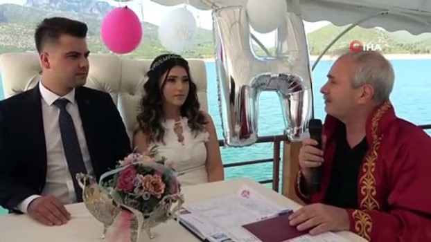 - Adana’nın Kozan ilçesinde 6 aydır pandemi kısıtlamalarının kalkmasını bekleyen Muhammed Enes Uyanık ve Hatice Korkut çifti, Kozan baraj gölünün ortasında düzenlenen tekne turu ile dünya evine girdi.Kozan Belediye Başkanı Kazım Özgan’ın kıydığı nikahta çift, pandemi tedbirlerine uyarak sınırlı sayıda aile bireylerinin katılımı ile teknede resmi nikahlarını kıydırırken diğer akrabaları ile telefon bağlantısı yaparak görüştü.Kozan Belediye Başkanı Kazım Özgan, bu yıl kısıtlamaların ardından Kozan Baraj gölü ortasında, teknede ilk nikah merasimini yaptıklarını belirtti.