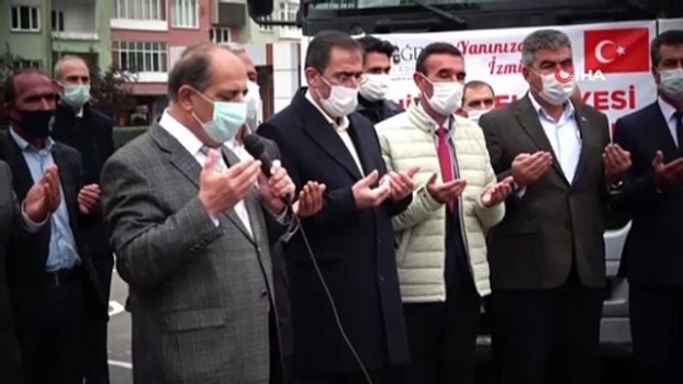- Niğde Valiliği ve Belediye Başkanlığı tarafından organize edilen deprem yardım tırları dualarla uğurlandı. Pazartesi günü başlayan yardım kampanyasında Niğdeli vatandaşlar tarafından belediyeye getirilen battaniye, yatak, gıda ve temizlik malzemesi yüklü 3 tır İzmir’e hareket etti. Belediye önünde düzenlenen törende İl Müftüsü Osman Ayas dua ederek tırlar uğurlandı. Niğde Valisi Yılmaz Şimşek, “İzmir’de meydana gelen deprem sonrası ülke olarak birlik ve beraberlik içerisinde İzmir’in yaralarını sarmak için hareke geçildi. Biz de Niğde’de başlattığımız çalışma ile tırlarımızı doldurduk ve İzmir’e uğurladık” dedi.