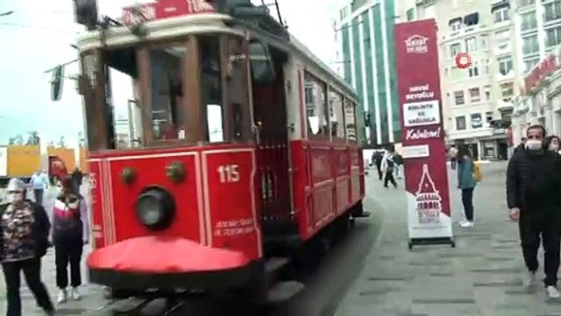 Tramvaya binen vatandaşlar sosyal mesafe kuralına uyurken, bazı vatandaşlar tramvay hareket ederken kapılara asıldı. Yeni tip corona virüsle (Covid-19) mücadele tedbirleri kapsamında 5 Nisan'da seferlerine ara verilen nostaljik tramvay bugün ilk seferlerini Taksim Meydanı'nda gerçekleştirdi. 2 ay aradan sonra sabah saat 07.00 itibarıyla yolcularını alan nostaljik tramvaya binen vatandaşlar sosyal mesafe kuralına uyurken, bazı vatandaşlar tramvay hareket ederken kapılara asıldı. “Bir nostalji olsun diye bindim” Uzun süredir tramvayı kullanmayan vatandaş, “Yaklaşık 4 ay sonra tramvaya biniyorum. Şirkette kapalı olduğu için bugün yürümek istemedim. Bir nostalji olsun diye bindim” dedi.