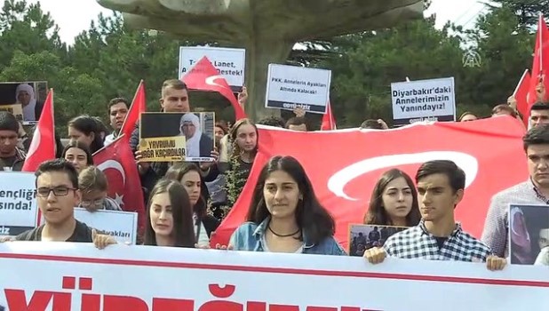 Açıklamanın ardından kampüs içerisinde yürüyen grup, PKK ve HDP aleyhine sloganlar attı."Gençlik Marşı"nı söyleyen öğrenciler, daha sonra şehitler için saygı duruşunda bulunup İstiklal Marşı okudu.