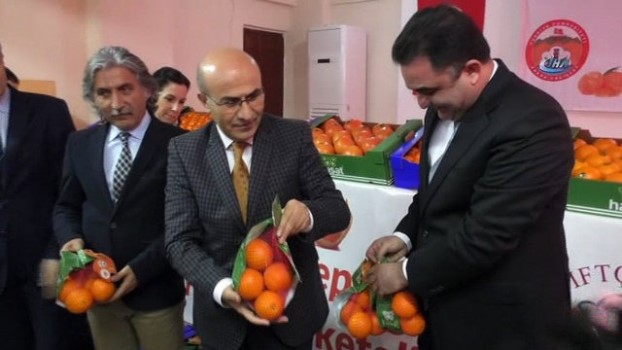 Konuşmaların ardından Vali Mahmut Demirtaş ile protokol üyeleri öğrencilere narenciyeleri dağıttı.