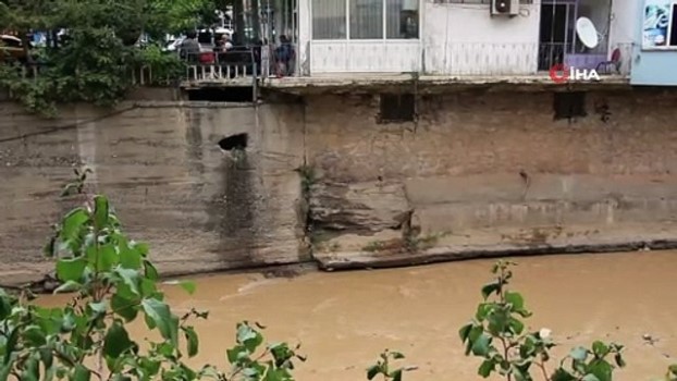 ( ERZURUM )-Çay kenarında mahsur kalan kediyi hayvan sever vatandaş kurtardı ERZURUM