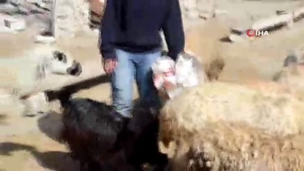 -Zuhal'in keçi ve koyunlara yem vermesi