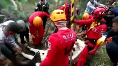 Ormanlık alanda mahsur kalan ineği Kuşadası AKUT ekibi kurtardı