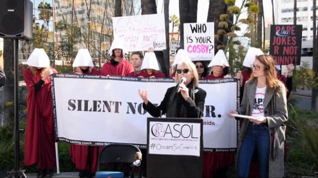 Oscar Ödül Töreni başlamasına saatler kala Hollywood’da tecavüz ve cinsel taciz davalarında zaman aşımının kaldırılması kampanyasını yürüten CASOL tarafından protesto gösterisi düzenlendi.