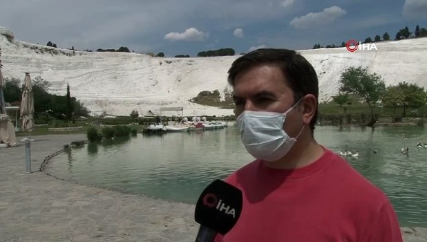 - Korona virüs salgını sebebiyle ziyarete kapanan Pamukkale’yi görmek isteyen vatandaşlar, kapısına kadar geldikleri travertenleri uzaktan seyrederek hasret gidermeye çalıştı. Geçtiğimiz yıl milyonlarca yerli ve yabancı turistin ziyaret ettiği travertenleri ile dünyaca ünlü Pamukkale geçtiğimiz ay korona virüs (Kovit-19) nedeniyle ziyarete kapatıldı. Giriş çıkışların yasak olduğu beyaz cenneti yine de görmek isteyen bazı vatandaşlar ise kapısına kadar gelip içeri giremedikleri Pamukkale’yi uzaktan seyrederek hasret gidermeye çalıştılar. Pamukkale’nin boş halini görmek isteyen bazı vatandaşlar travertenleri uzaktan seyrederek bol bol hatıra fotoğrafı çektirdiler. Pamukkale’nin eski, canlı halini bildiklerini söyleyen vatandaşlar bir anca korona virüs tehlikesinin geçmesini ve beyaz cennetin geçmişteki haline tekrara geri dönmesini beklediklerini ifade ettiler. Beyaz cennete girişlerin Kültür ve Turizm Bakanlığının açıklayacağı tarihte tekrar başlayacağı öğrenildi. Bölgedeki esnaf ve turizmcilerde Pamukkale’nin ziyarete açılmasını dört gözle bekliyor. Öte yandan, eşsiz güzellikteki Pamukkale’nin son hali havadan da görüntülendi. (GC-RFK