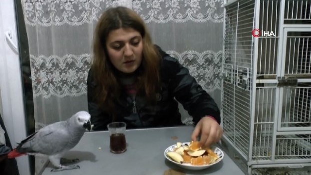 -Hadiye Dölek'in Paşa adlı papağana çay içirmesi, meyve yedirmesi
