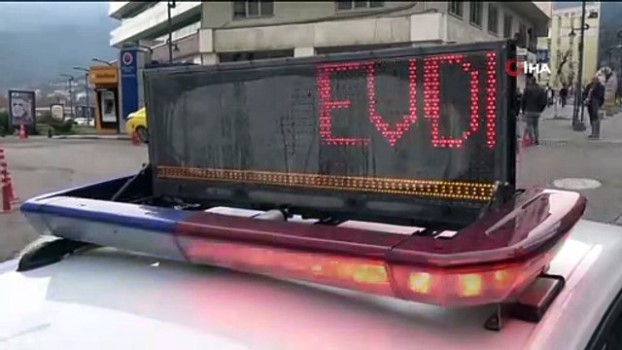 - Karabük Emniyet Müdürlüğü ekipleri, hem anonslarla hem de araçların üzerlerine ekledikleri tepe lambalı "Evde Kal Karabük" yazı paneli ile vatandaşlara evde kalmaları uyarısında bulunuyor. Çin’in Wuhan kentinde ortaya çıkan ve kısa sürede salgın haline gelen korona virüs nedeniyle vatandaşlara evde kalmaları yönündeki bir çağrı da Karabük Emniyet Müdürlüğünden geldi. Trafik ekipleri, anonslar ve araçların üzerlerine ekledikleri tepe lambalı yazı paneli ile vatandaşlara evlerinde kalmaları konusunda uyarıda bulundu. Trafik ekipleri kentin cadde ve sokaklarında dolaşarak yaptıkları anonsta, “ Evlerinizde kalmanız sizlerin ve sevdiklerinizin hayatı için önemlidir. Lütfen zorunlu olmadıkça sokağa çıkmayalım" derken, araçların üzerinde bulunan tepe lambalı yazı paneline ise "Evde kal Karabük", yazısı yazıldı.