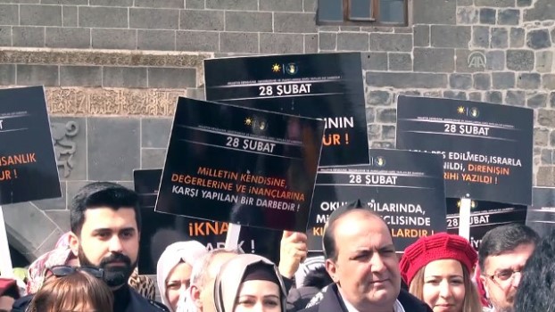 AK Parti Diyarbakır İl Başkanlığı'nca Merkez Sur ilçesindeki tarihi Ulu Cami önünde yapılan basın açıklamasına katılanlar, "28 Şubat demokrasiye balans ayarı kılıfıyla millete vurulan darbedir", "28 Şubat demokrasiye vurulan kara lekedir" ve "Unutmadık, unutmayacağız,unutturmayacağız" dövizleri taşıdı.AK Parti Diyarbakır İl Başkan Yardımcısı Müzeyyen Kaya, 28 Şubat'ın siyasi, idari, hukuki, ekonomik ve toplumsal alanlarda onarılması güç tahribatlara yol açtığını söyledi.