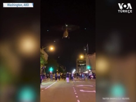Başkent Washington’da, bir helikopter yere oldukça yakın bir noktada havada durarak protestocuların dağılmasını sağlamaya çalıştı. Beyaz Saray önünde George Floyd’un polis nezaretinde ölmesini protesto eden göstericiler, Pazartesi günü polisin sert müdahalesiyle karşı karşıya kaldı PolisProtestoHelikopter