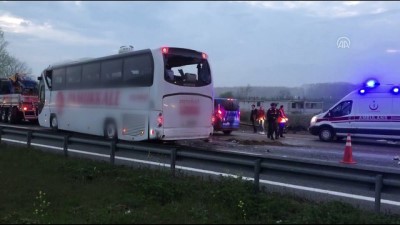- Kaza yerinden görüntüler Sakarya 'da yolcu otobüsü devrildi - Anadolu Otoyolu Ankara istikametinde yolcu otobüsünün devrilmesi sonucu ilk belirlemelere göre çok sayıda yaralı olduğu bildirildiSAKARYA (AA) - Anadolu Otoyolu Ankara istikametinde yolcu otobüsün devrilmesi sonucu ilk belirlemelere göre çok sayıda yaralı olduğu belirtildi.Alınan bilgiye göre, Anadolu Otoyolu Akyazı Hendek gişeleri Ankara istikametinde, 78 BS 510 plakalı yolcu otobüsü, sürücüsünün direksiyon hakimiyetini kaybetmesi sonucu devrildi.Haber verilmesi üzerine olay yerine çok sayıda ambulans sevk edildi.Yaralılar, sağlık ekiplerince çevredeki hastanelere kaldırıldı.Kazada ilk belirlemelere göre, çok sayıda yaralı olduğu öğrenildi. HastaneKaryaYolcu OtobüsüSağlık EkipleriDireksiyon