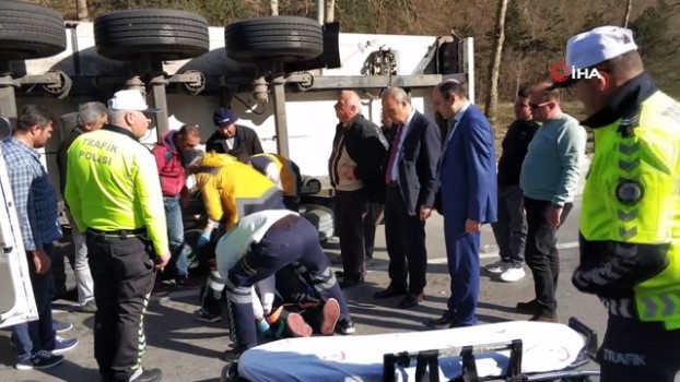 Samsun'da ayva yüklü tır devrildi: 1 yaralı