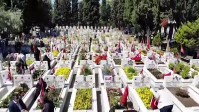 İstanbul’da şehit aileleri her bayram olduğu gibi bayramın birinci gününde Edirnekapı Şehitliği'ni ziyaret etti. Hüzün ve gözyaşının hakim olduğu şehitlikte, dualar okunarak şehit kabirleri temizlendi. “Şehidimize kavuştuk” Oğlu Halil İbrahim Gürel’in 2017’deki Kurban Bayramı’nın ikinci gününde Hakkari Çukurca’da şehit olduğunu ifade eden şehit babası Kamil Gürel, “Koşup geldik. Bayram bizim neyimize ama ne yapalım? Çocuğumuzu özlüyoruz. Geliyoruz. Allah razı olsun. Cumhurbaşkanımız bize böyle bir hak tanıdı. Şehidimize geldik. Kavuştuk. Çok mutluyum. Peygamber efendimize komşu oldu. Bize şefaatçi olacak” diye konuştu.