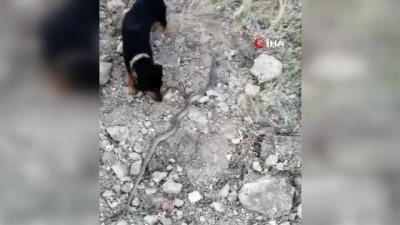 ( DENİZLİ )- Köpeğin ölü yılanla oyun imtihanı amatör kamerada DENİZLİ