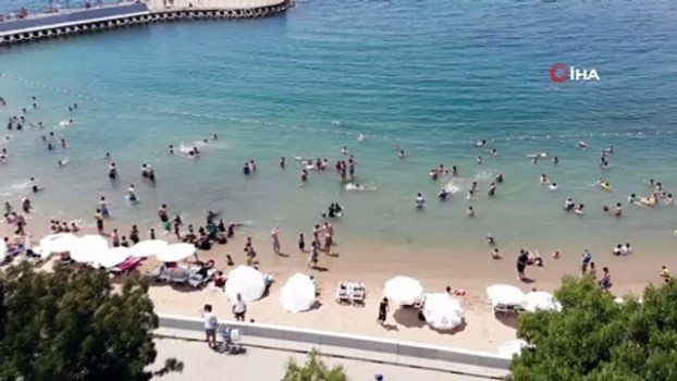 - İstanbul'da artan sıcaklıklar sonrası vatandaşlar Caddebostan Plajına akın etti. Plajdaki hafta sonu yoğunluğu havadan görüntülendi. İstanbul'da etkili olan sıcak havalarda bunalanlar, serinlemek için Caddebostan Halk Plajı'nı tercih etti. Termometrelerin 30 dereceyi aştığı sıcaklıklarda plaja gelen vatandaşlardan kimisi denize girerken kimi vatandaş ise güneşlenmeyi tercih etti. Öte yandan son haftalarda sıcaklıkların artış gösterdiği İstanbul'da sıcaklık 33 derece, nem yüzde 48, rüzgar hızı ise saatte 11 kilometre olarak ölçümlendi. Vatandaşların güneşlenip denize girdiği Caddebostan plajı drone ile havadan görüntülendi. (ASK-CGK