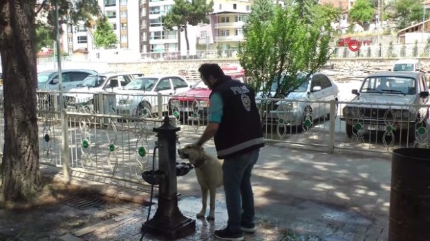 - Amasya’da sıcaktan bunalan ve çeşme başında dolaşan köpeğe polis çeşmeyi açarak eliyle su içirdi. Amasya Emniyet Müdürlüğü Asayiş Şube Müdürlüğünde çalışan Yusuf Öztürk, yaptığı bir davranışla büyük takdir topladı. Çeşme yanında dolaşan köpeğin susadığını fark eden Öztürk, çeşmeyi açarak eliyle köpeğe su içirdi. Öztürk, köpeği sevmeyi de ihmal etmedi. Suyu içen köpek gözden kayboldu.