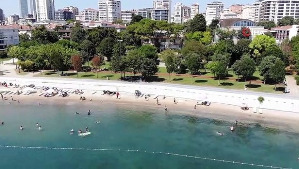 - İstanbul’da sıcak havalardan bunalan vatandaşlar, 9 günlük bayram tatilinin ardından Caddebostan’da denize girdi. Vatandaşların denize girdiği Caddebostan plajı drone ile havdan görüntülendi. 9 gün süren Kurban Bayramı tatilinin ardından, şehir dışına çıkan vatandaşlar dün İstanbul’a geri döndü. İstanbul’da hakim olan sıcak havalardan bunalan vatandaşlar kendilerini denizin serin sularına bıraktı. Caddebostan plajına gelen vatandaşlar burada hem güneşlendi hem de denizde yüzdü. Vatandaşların güneşlenip denize girdiği Caddebostan plajı drone ile havadan görüntülendi. (CGK-