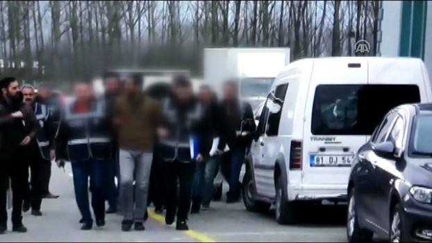 - Şüphelilerin adliyeye getirilişi Düzce 'deki silahlı yaralama - Hastane önünde iki grup arasında çıkan ve 6 kişinin yaralandığı silahlı kavgada gözaltına alınan 9 şüpheliden 4'ü tutuklandıDÜZCE (AA) - Düzce 'de 2'si ağır 6 kişinin yaralandığı silahlı kavgaya ilişkin gözaltına alınan 9 kişiden 4'ü tutuklandı.Geçen cuma günü Kaynaşlı ilçesinde bıçaklı yaralamanın ardından Düzce Atatürk Devlet hastanesi önünde tarafların silahlı kavgasına dönüşen olaya ilişkin gözaltına alınan 9 şüpheliden 5'inin emniyetteki işlemleri tamamlandı.Sağlık kontrolü ardından adliyeye sevk edilen şüphelilerden Uğur T, Ercan T, Özcan T ve Sinan R. çıkarıldıkları nöbetçi hakimlikçe, "kasten adam öldürmeye teşebbüs" suçlamasıyla tutuklandı. S.S.Ç. ise adli kontrol şartı ile serbest bırakıldı.Bu arada 4 kişinin ise emniyet sorgusunun ardından salıverildiği öğrenildi. - OlayKaynaşlı ilçesinde iki grup arasında çıkan tartışmada Murat D. bıçakla yaralanmış, Düzce Atatürk Devlet Hastanesine sevk edilen yaralıyı taşıyan ambulansı takip eden 5 kişi, araçtan nakledildiği sırada sedyedeki yaralıya silahla ateş etmişti. Tarafların da müdahil olduğu silahlı kavgada 2'si ağır 6 kişi yaralanmıştı.Polis, olayla ilgili 9 şüpheliyi gözaltına almıştı. HastaneAdli KontrolSilahlı KavgaBıçaklı YaralamaIrak