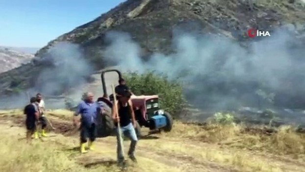 ( SİVAS )- Sivas’ın Koyulhisar ilçesine bağlı Dilekli köyünde çıkan örtü yangınını köylüler kendi çabaları ile kontrol altına almaya çalışıyor. SİVAS