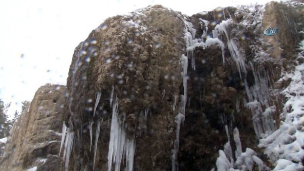 Sivas'ta şelale buz tuttu