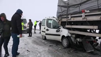 -Karda yol almaya çalışan araçlar ve ambulans