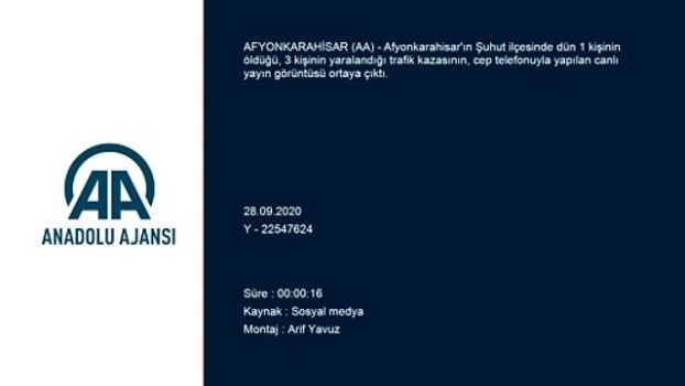 - Kazanın canlı yayında cep telefonu görüntüsüSosyal medyadan canlı yayın yaparken kaza geçirmişlerAFYONKARAHİSAR (AA) - Afyonkarahisar 'ın Şuhut ilçesinde dün 1 kişinin öldüğü, 3 kişinin yaralandığı trafik kazasının, cep telefonuyla yapılan canlı yayın görüntüsü ortaya çıktı.Çobankaya rampası mevkisinde meydana gelen trafik kazasında yaralananlardan birinin, kaza sırasında sosyal medya hesabından cep telefonuyla canlı yayın yaptığı öğrenildi.Paylaşılan videoda, otomobilin sağ şeritteki bir kamyonu sollarken savrulduğu görülüyor. Kaza sırasında, araç içerisindeki korku ve panik anının hakim olduğu gözleniyor. - OlayMustafa Çoban (40) yönetimindeki 35 GT 812 plakalı otomobil, dün Karaadilli beldesine seyir halindeyken Çobankaya rampası mevkisinde Yasin Öge'nin (43) kullandığı 03 AAY 622 kamyonu sollarken sürücünün direksiyon hakimiyetini kaybetmesi sonucu yuvarlanmış, kazada, otomobilde bulunan Ummahan Aytekin (49) olay yerinde hayatını kaybetmiş, sürücü Çoban ile araçta bulunan Tülin Aytekin (49) ve İbrahim Gezer (38) ağır yaralanmıştı. Sosyal MedyaCanlı YayınTrafik KazasıCep TelefonuDireksiyon